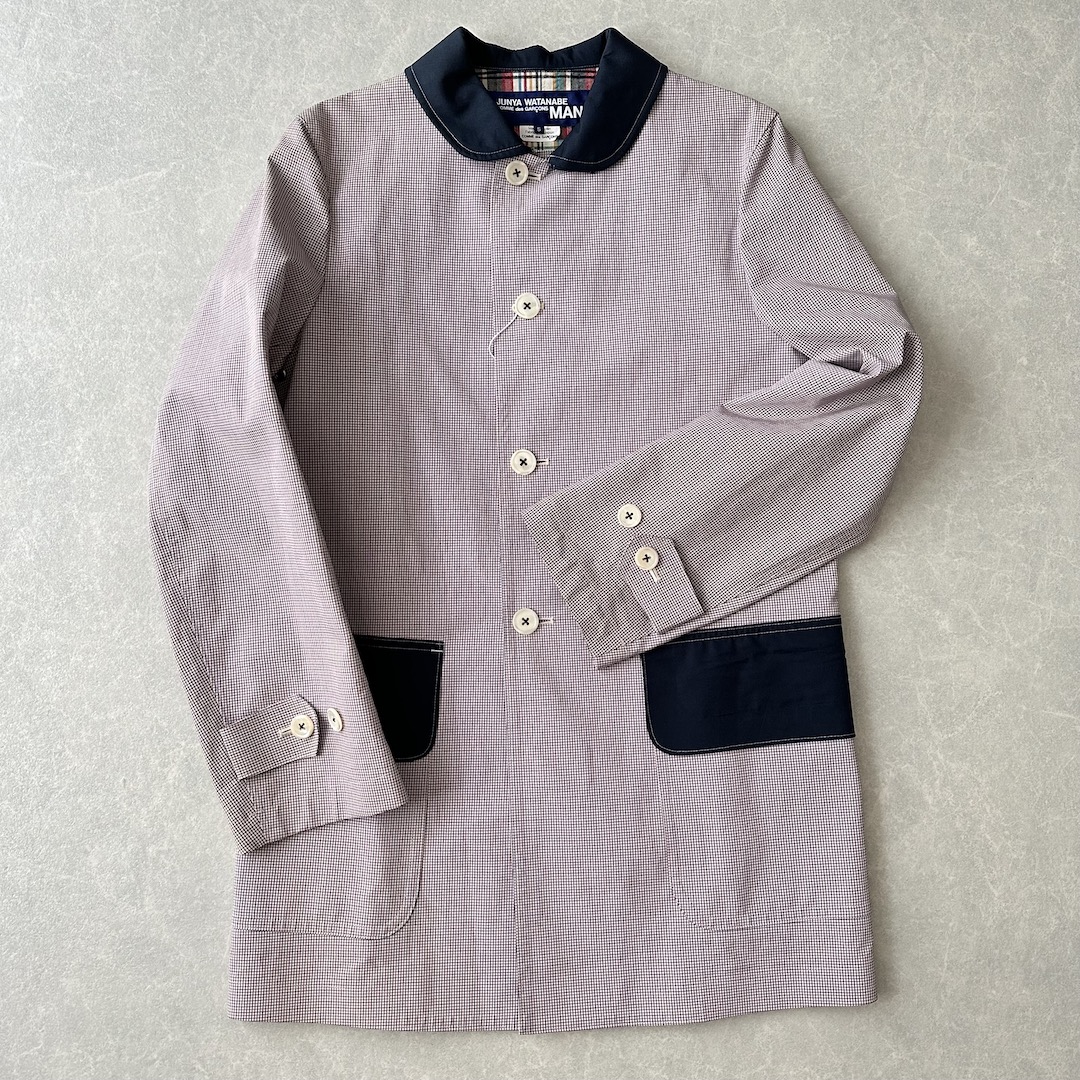 【JUNYA WATANABE COMME des GARCONS MAN】ギンガムチェック柄ステンカラーコート S 古着 メンズ
